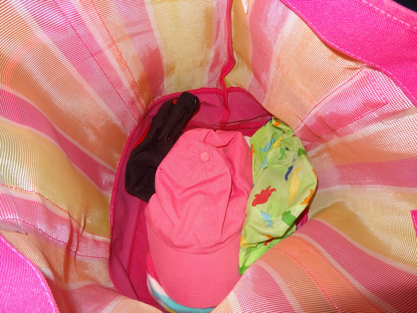 Then we used a swim bag to put extra hats that they use out at the pool.